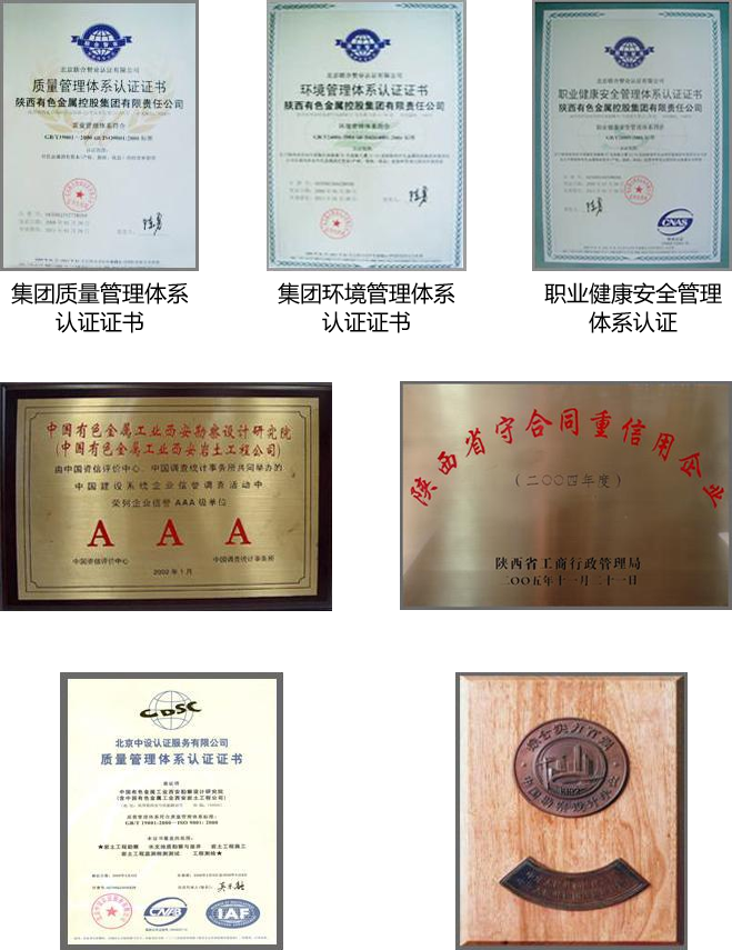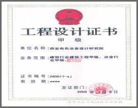 西安有色冶金設(shè)計(jì)研究院具有國(guó)家建設(shè)部、國(guó)家發(fā)改委頒發(fā)的冶金行業(yè)、建筑行業(yè)、工程咨詢、工程造價(jià)四項(xiàng)設(shè)計(jì)、咨詢甲級(jí)資質(zhì)和城市規(guī)劃、工程監(jiān)理、壓力管道、安全評(píng)價(jià)四個(gè)乙級(jí)資質(zhì)??沙袚?dān)國(guó)內(nèi)外大、中型冶金、礦山工程、土木建筑工程可行性研究、初步設(shè)計(jì)、施工圖設(shè)計(jì)以及科研攻關(guān)、機(jī)電一體化、自動(dòng)化技術(shù)研究,并能進(jìn)行工程項(xiàng)目管理、工程監(jiān)理和工程承包,是《陜西省工程勘察設(shè)計(jì)行業(yè)從業(yè)公約》發(fā)起單位,通過ISO9001-2000質(zhì)量管理體系、ISO14000-2004環(huán)境管理體系、OHSAS18000職業(yè)健康安全三大管理體系認(rèn)證。