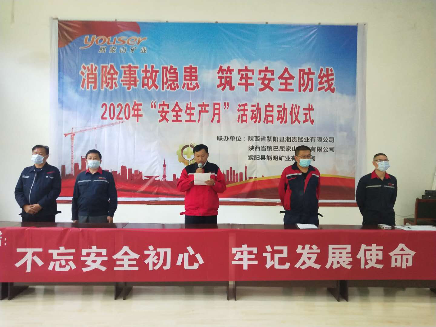 冶礦集團(tuán)權(quán)屬湘貴錳業(yè)、屈家山礦業(yè)、能明礦業(yè)聯(lián)合舉辦2020年“安全生產(chǎn)月”活動(dòng)啟動(dòng)儀式