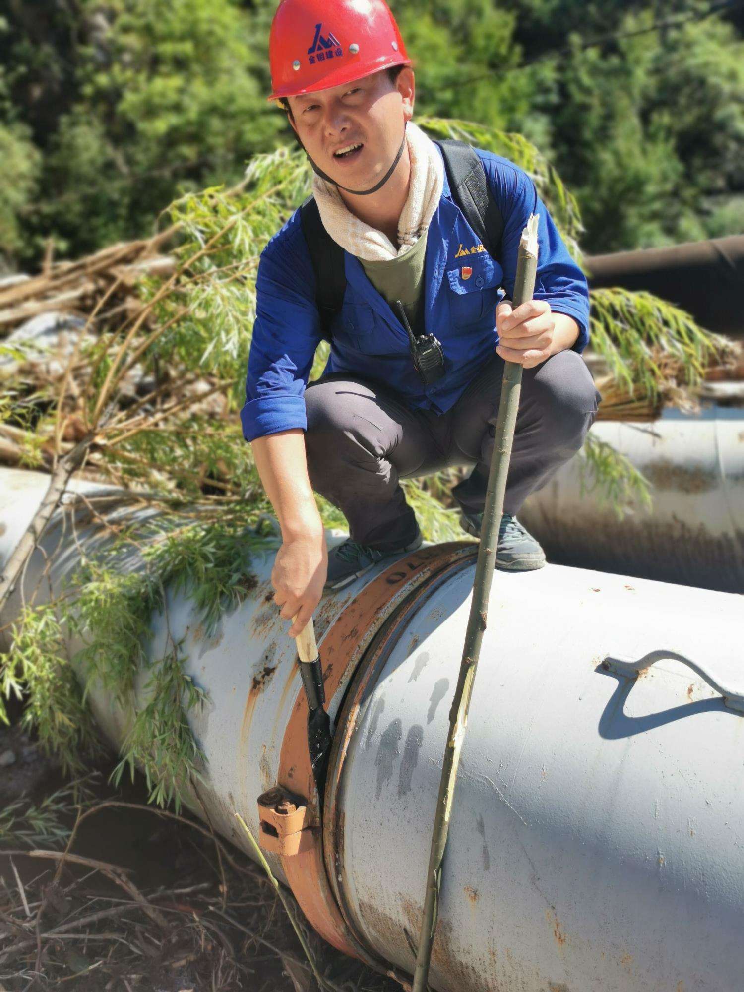 在栗西尾礦庫上壩道路打通后,他來不及休息,又接到王家坪尾礦輸送管線疏通的重任。他再次一馬當(dāng)先,帶領(lǐng)搶險(xiǎn)人員爬山涉水、翻山越嶺,徒步實(shí)地勘察管線受損情況,參與研究制定搶修作業(yè)方案。他們背著礦泉水、方便面,手腳并用爬過激流當(dāng)?shù)赖臏o家溝路段,腳踩深達(dá)80多厘米的洞內(nèi)淤泥積水,從被亂石掩埋,高度只有30多厘米高的洞口夾縫中艱難爬出。他每天在泥濘中行走20余公里,從不退縮,一往無前。