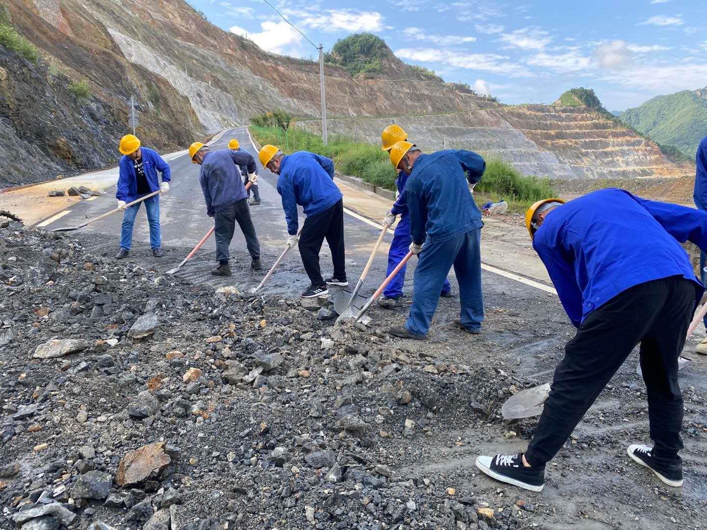 露天礦積極響應金鉬集團號召,在全員開展自救工作的同時,抽調骨干力量和設備,馳援受災最嚴重的地區(qū),展開對外援助工作。8月6日上午,在搶修石可至麻家砭道路中,露天礦抽調11臺工程機械和車輛,露天礦領導帶領100余人奔赴現(xiàn)場,他們克服持續(xù)降雨、河水漫漲、通訊不暢、運輸?shù)缆藩M窄、夜間照明不良等困難,歷經(jīng)63小時搶修水毀道路4公里, 8月8日晚23時道路通行,為金堆礦區(qū)恢復供水供電提供了保障。臨近的洛南縣麻坪鎮(zhèn)災情最為嚴重,隨后,露天礦又參與到搶修麻坪鎮(zhèn)通村道路工作中。為了爭取更多的搶修時間,救災人員自帶干糧,與災民同吃同住,歷時15天,搶修水毀道路7公里,倒運砂石量20000立方米,于8月25日12時恢復了至洛南縣的通村道路。