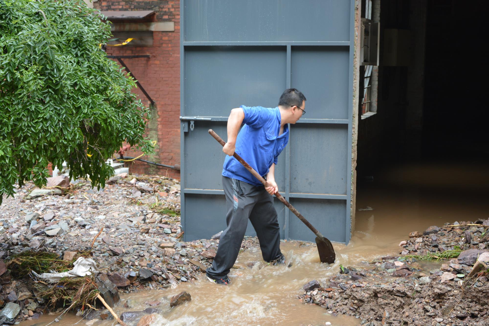 8月6日天剛亮,百花嶺選礦廠防汛搶險(xiǎn)各專業(yè)組立刻進(jìn)入工作狀態(tài)。為了獲得制定搶修復(fù)產(chǎn)方案的資料和依據(jù),鄧陽和同事趟著河水、相互幫扶不斷前進(jìn),只為盡快查明受災(zāi)詳情。