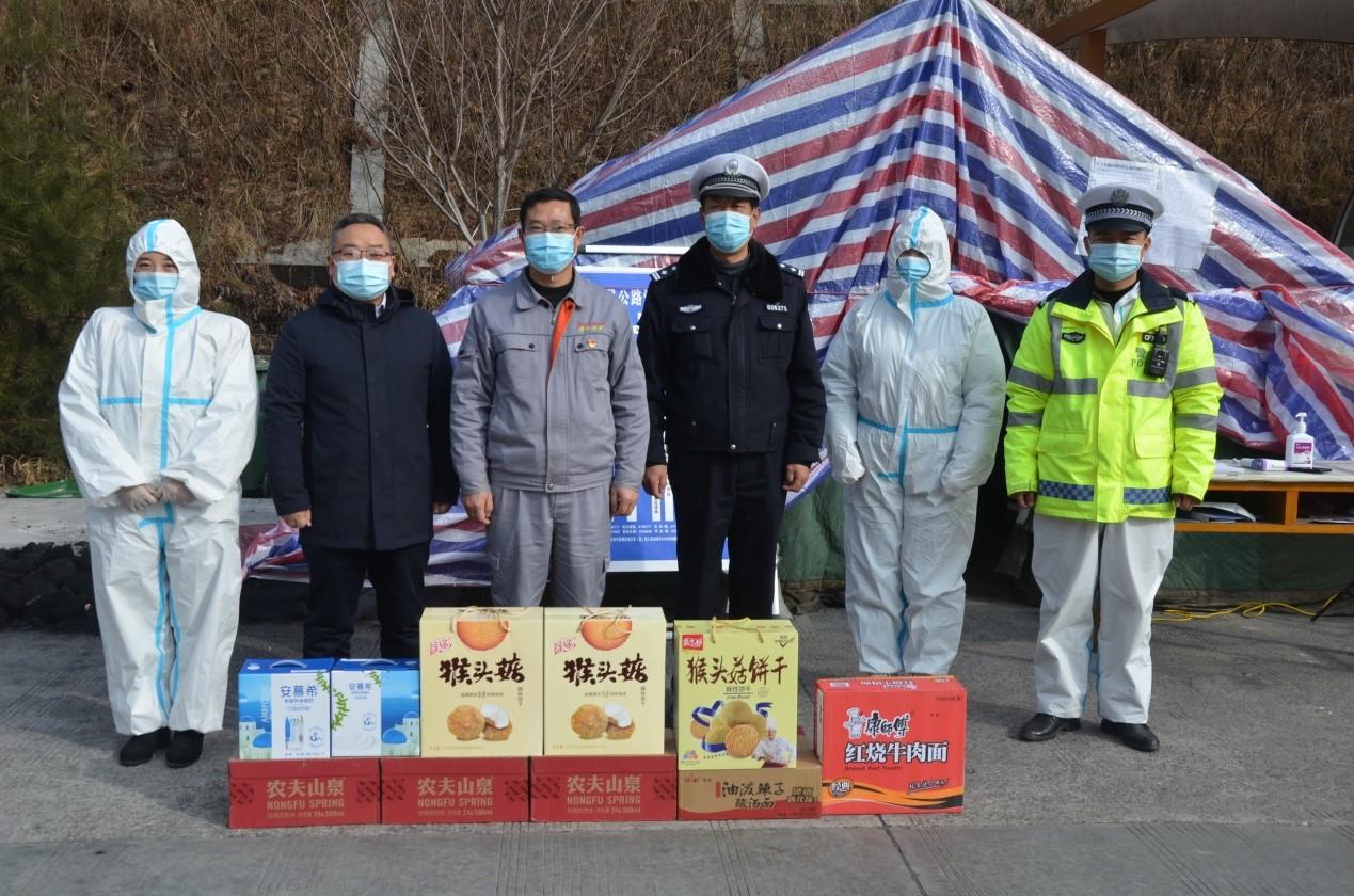 為積極助力當?shù)卣咔榉揽毓ぷ?,黃金集團四方金礦的志愿者為鳳縣坪坎鎮(zhèn)政府和坪坎高速路檢查卡點的執(zhí)勤人員送去了洗手液、84消毒液、口罩及方便面、礦泉水等物資,感謝防疫執(zhí)勤人員不顧危險、舍小家為大家,希望點點心意帶給大家一些溫暖。地礦集團震奧鼎盛礦業(yè)公司積極參加鳳縣留鳳關(guān)鎮(zhèn)“暖冬清潔行動”,捐贈2000元物資,并多次為地方防疫醫(yī)護人員送去慰問品,以實際行動助力鳳縣疫情防控工作。