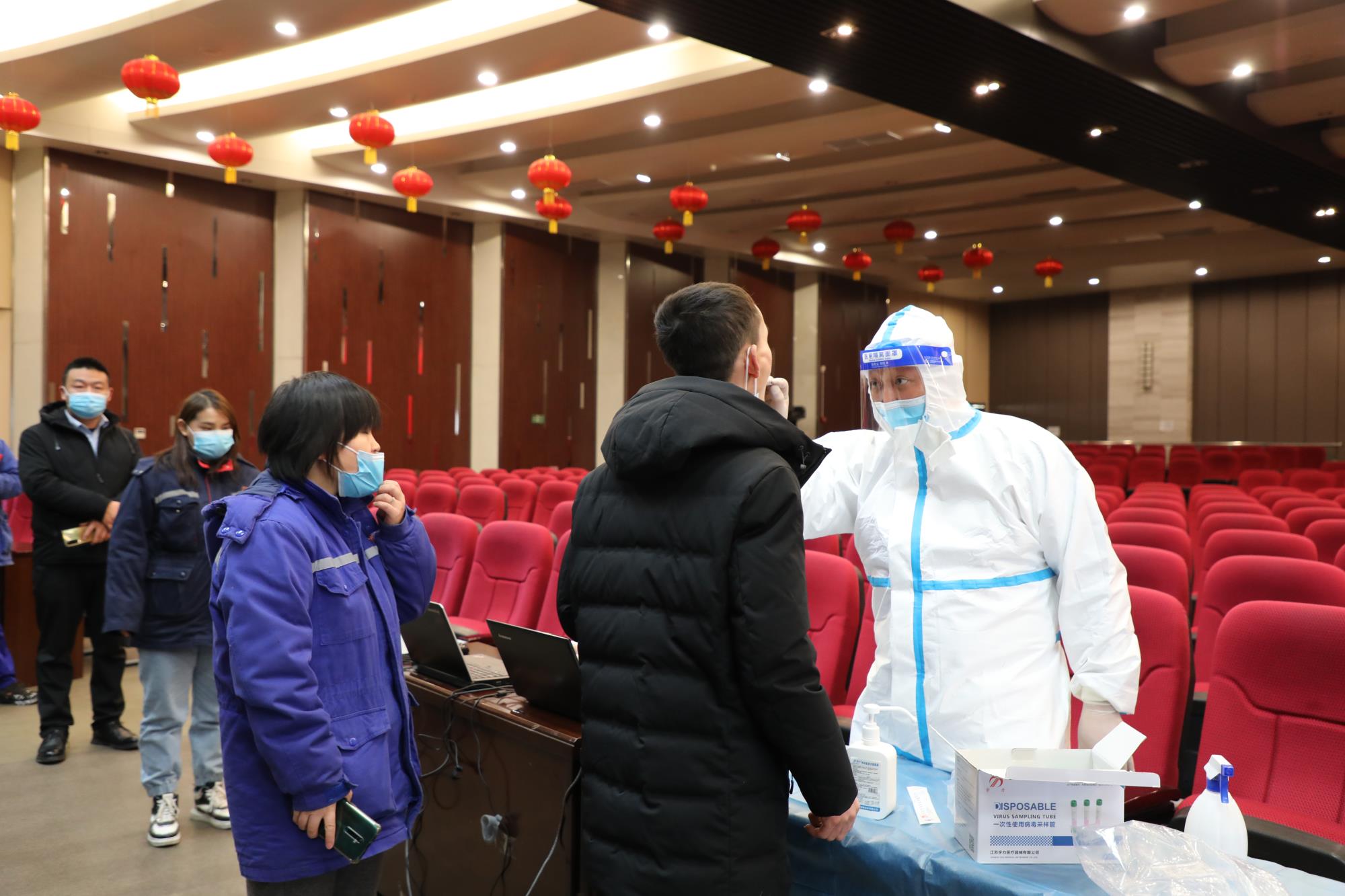 本次檢測(cè),榆林新材料集團(tuán)邀請(qǐng)了榆陽(yáng)區(qū)新明樓社區(qū)衛(wèi)生服務(wù)中心8名醫(yī)護(hù)工作人員,分4組在綜合樓五樓多功能廳、煤業(yè)公司消防救護(hù)隊(duì)設(shè)置臨時(shí)采樣點(diǎn)開(kāi)展核酸檢測(cè)。