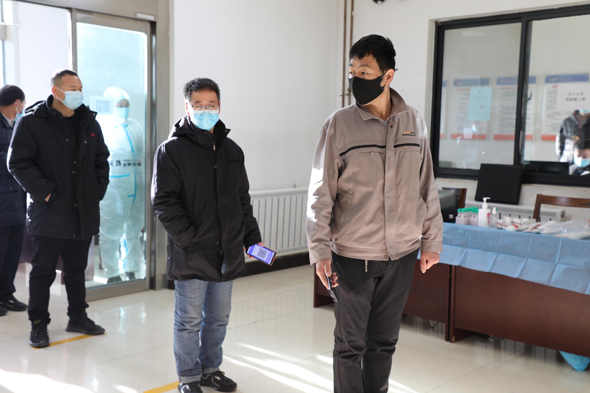核酸檢測(cè)中,廣大職工和家屬有序排隊(duì),全程佩戴口罩,保持一米安全距離,在現(xiàn)場(chǎng)工作人員的安排指揮下,逐一掃碼、登記,由身穿防護(hù)服的醫(yī)護(hù)工作人員進(jìn)行核酸檢測(cè)采集。整個(gè)過(guò)程防護(hù)到位、安全有序。
