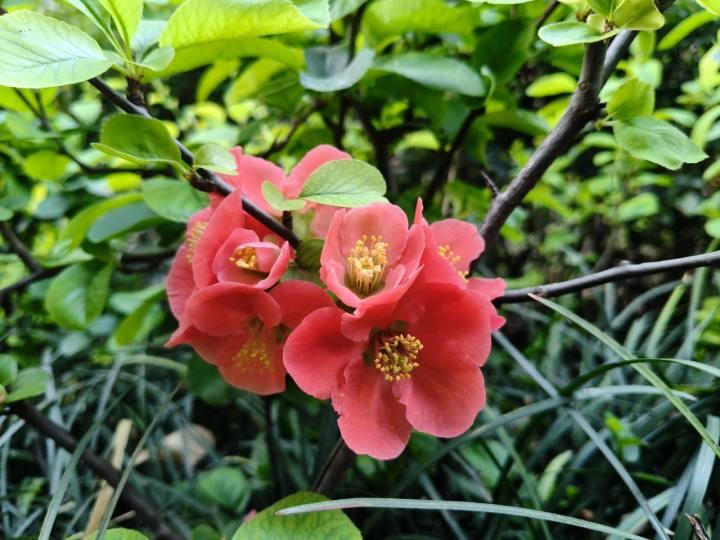 清晨,我步履匆忙地趕到公司門口,一抹動(dòng)人的色彩瞬間攫住了我的目光。回眸發(fā)現(xiàn),幾盆貼梗海棠花在和煦陽(yáng)光的輕撫下,綻放得格外熱烈。它們的枝干蒼勁有力,卻又不失一份優(yōu)雅,每一道細(xì)密的紋理仿佛在輕聲訴說著春天獨(dú)有的詩(shī)意。