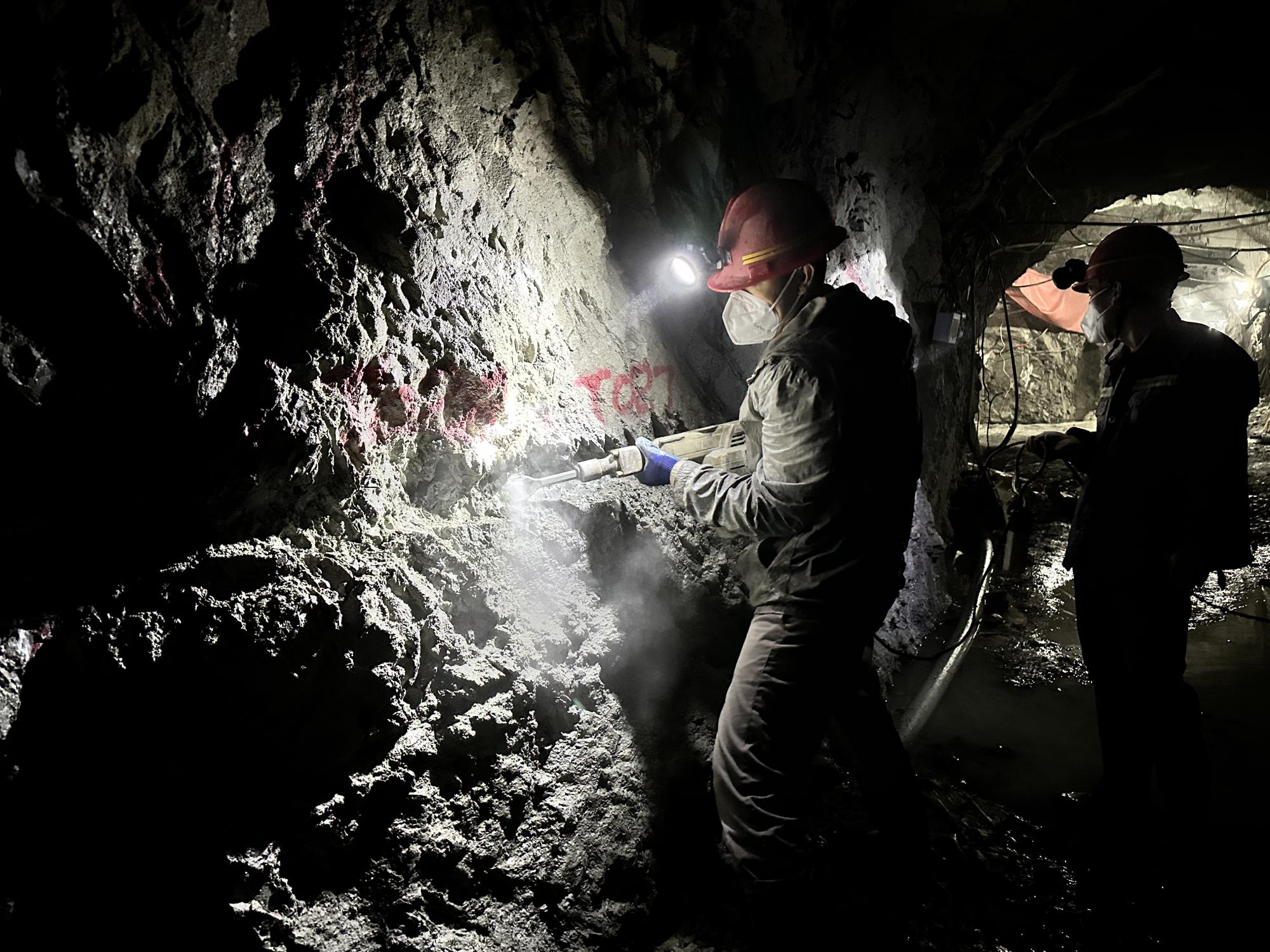 山陽(yáng)縱橫礦業(yè)的地質(zhì)技術(shù)服務(wù)合同還未敲定,但礦山生產(chǎn)不能等。這一周成了與時(shí)間的搶奪戰(zhàn),每日晨光稀薄時(shí),頭燈便已劃破礦井幽深的黑暗。地下分不清晝夜,只有巖壁滲水單調(diào)的滴答聲作伴。我們弓身在水汽彌漫的巷道里穿行,好不容易找到片稍干爽的地方,剛攤開(kāi)素描紙,水痕又暈染了墨線。我們的地質(zhì)編錄工作常與坑道施工“撞車(chē)”,遠(yuǎn)處不時(shí)傳來(lái)悶雷般的爆破聲,震得心口發(fā)麻,防塵口罩混著水汽堵在鼻腔,讓人更加煩躁。