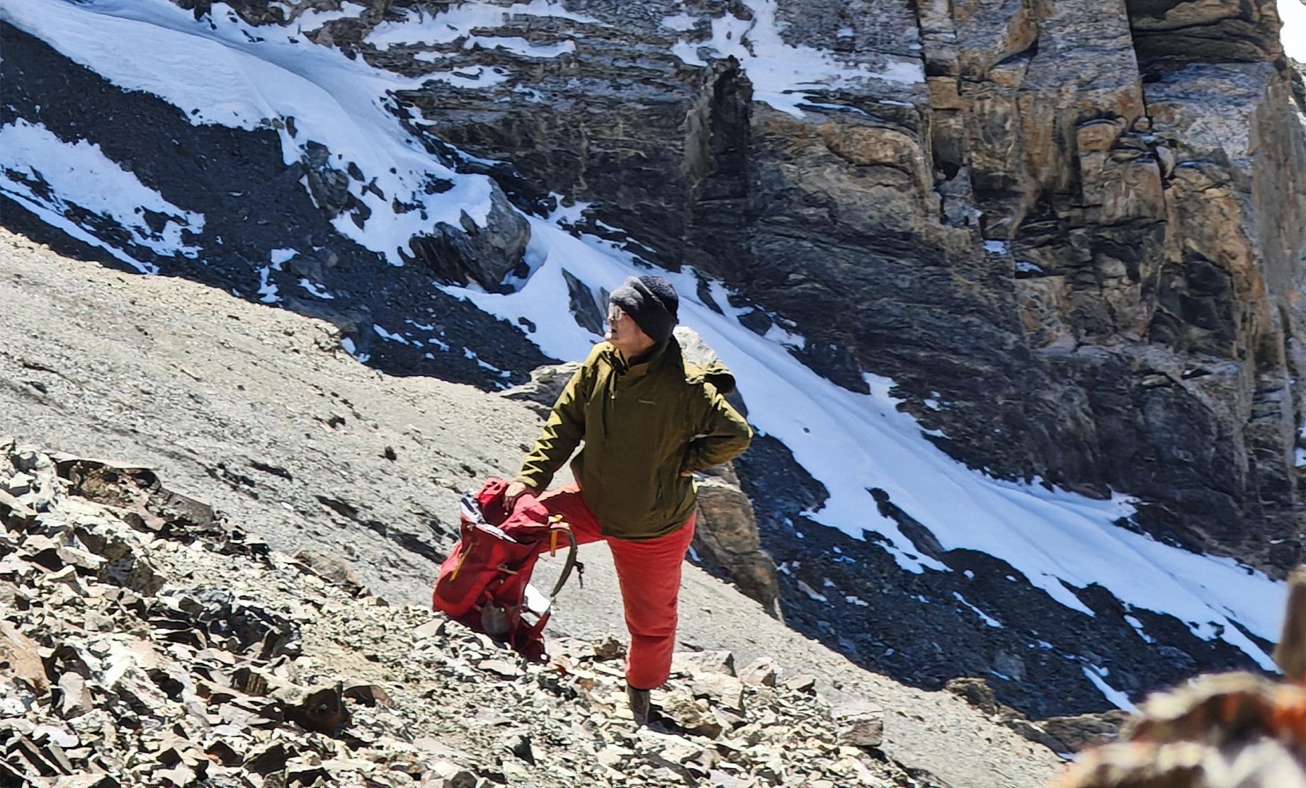 日暮時(shí)分,我們踏著來時(shí)的腳印下山。褲腳沾滿冰碴,地質(zhì)包里珍貴的巖心標(biāo)本撞出輕響,身后的巖壁漸漸隱進(jìn)暮色。風(fēng)里裹著雪的清冽,也裹著地質(zhì)人獨(dú)有的踏實(shí)——這不只是風(fēng)景,是刻在雪線間的,屬于大地與我們的故事。