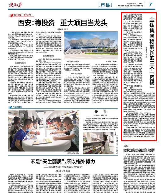上半年寶鈦集團的工業(yè)總產(chǎn)值同比增長4%,利潤總額也實現(xiàn)了同比較大增長?!皩ξ覀兤髽I(yè)而言,國內(nèi)市場逐步回暖的機遇非常關鍵。下一步,我們將在做好疫情防控常態(tài)化的同時,進一步拓展市場,全力推進高品質(zhì)產(chǎn)品生產(chǎn),努力實現(xiàn)企業(yè)高質(zhì)量發(fā)展,為我省的穩(wěn)增長工作作出更大貢獻?!睂氣伡瘓F董事長、黨委書記王文生說。