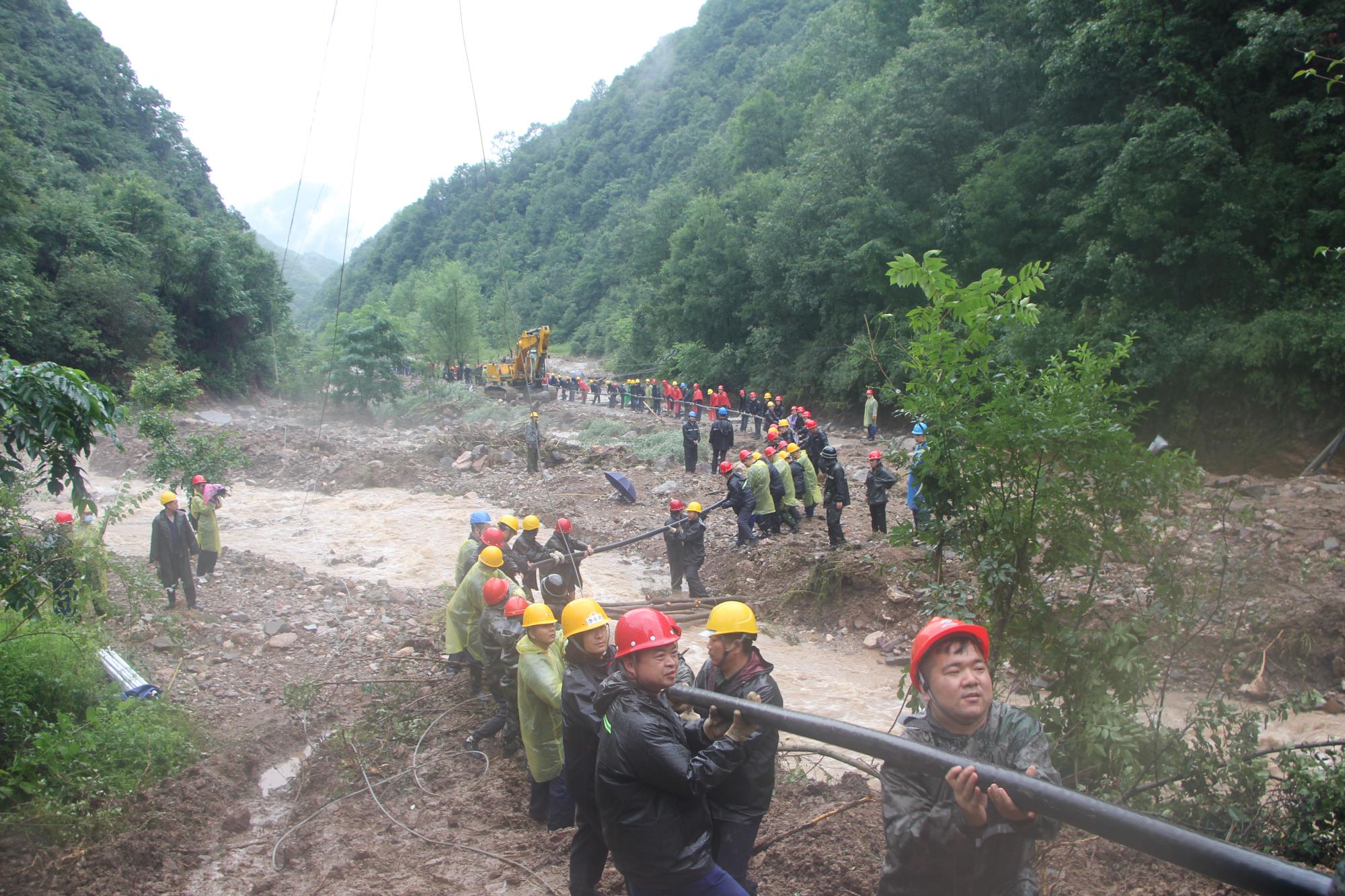 截至8月8日,麻家砭水庫道路具備通車條件,水庫方向電路鋪設(shè)電纜搶修工作完成,建立了臨時(shí)生產(chǎn)供水管路;栗西尾礦庫上壩道路全線貫通,通訊搶修工作完成;配合地方政府修復(fù)了華金公路沖毀路段。僅用3天時(shí)間,金堆礦區(qū)供電、供水、通訊全部恢復(fù)正常,尾礦庫、水庫具備恢復(fù)生產(chǎn)搶修條件。