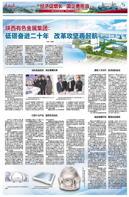 作為我國(guó)最大的以鈦及鈦合金為主的專業(yè)化稀有金屬生產(chǎn)科研基地,陜西有色金屬集團(tuán)權(quán)屬企業(yè)寶鈦集團(tuán)是世界第三、亞洲規(guī)模最大的鈦材加工企業(yè),年加工能力突破2萬(wàn)噸,擁有兩家上市公司,被譽(yù)為“中國(guó)鈦城”,是中國(guó)鈦及鈦合金國(guó)標(biāo)、國(guó)軍標(biāo)、行標(biāo)的主要制定者,為我國(guó)第一顆氫彈、第一艘核潛艇、第一顆軟著陸衛(wèi)星、4500米深潛器載人球艙及C919國(guó)產(chǎn)大飛機(jī)等大國(guó)重器的研制作出了貢獻(xiàn)。