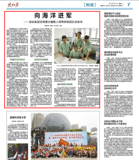 “能夠搭載科研人員下潛到大洋深處,祖國(guó)了不起,陜西科技了不起?!?月7日,在陜西省慶祝中國(guó)共產(chǎn)黨成立100周年主題展現(xiàn)場(chǎng),部分觀眾圍著寶鈦集團(tuán)研制的“深海勇士”號(hào)鈦合金載人球殼模型感慨道。
