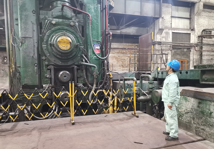郭文生正在檢查近10米高、重達(dá)數(shù)千噸的熱軋機(jī)。