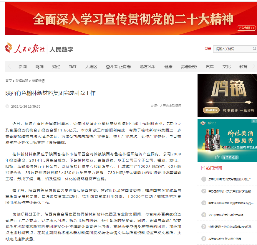 據(jù)了解,陜西有色金屬集團為貫徹落實陜西省委、省政府以及省國資委關(guān)于推進國有企業(yè)改革與高質(zhì)量發(fā)展的要求,增強國有資本流動性、提升國有資本利用效率,于2020年啟動了榆林新材料集團引進戰(zhàn)略投資者與資產(chǎn)證券化工作。