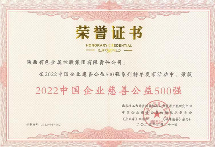 近日,2022中國企業(yè)慈善公益500強(qiáng)發(fā)布暨第六屆中國企業(yè)慈善公益論壇在重慶涪陵舉行,陜西有色金屬集團(tuán)榮獲“2022中國企業(yè)慈善公益500強(qiáng)”榮譽(yù)稱號(hào)。