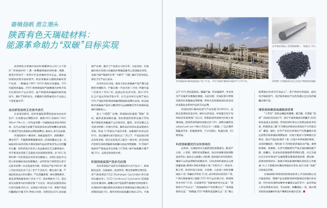 陜西有色天宏瑞科硅材料有限責(zé)任公司(以下簡(jiǎn)稱(chēng)“天瑞硅材料”)是一家集超純硅材料制造、銷(xiāo)售、服務(wù)和研發(fā)于一體的中外合資高新技術(shù)企業(yè),具有全球領(lǐng)先的電子級(jí)硅烷氣、粒狀多晶硅與超純多晶硅生產(chǎn)技術(shù),一期建成了年產(chǎn)18000噸粒狀多晶硅、300噸超純多晶硅、2000噸高純硅烷氣裝載能力的電子及光伏新材料產(chǎn)業(yè)化項(xiàng)目,生產(chǎn)的超純多晶硅和高純硅烷氣,填補(bǔ)了國(guó)內(nèi)空白,大幅提升陜西省相關(guān)產(chǎn)業(yè)鏈上下游配套水平。