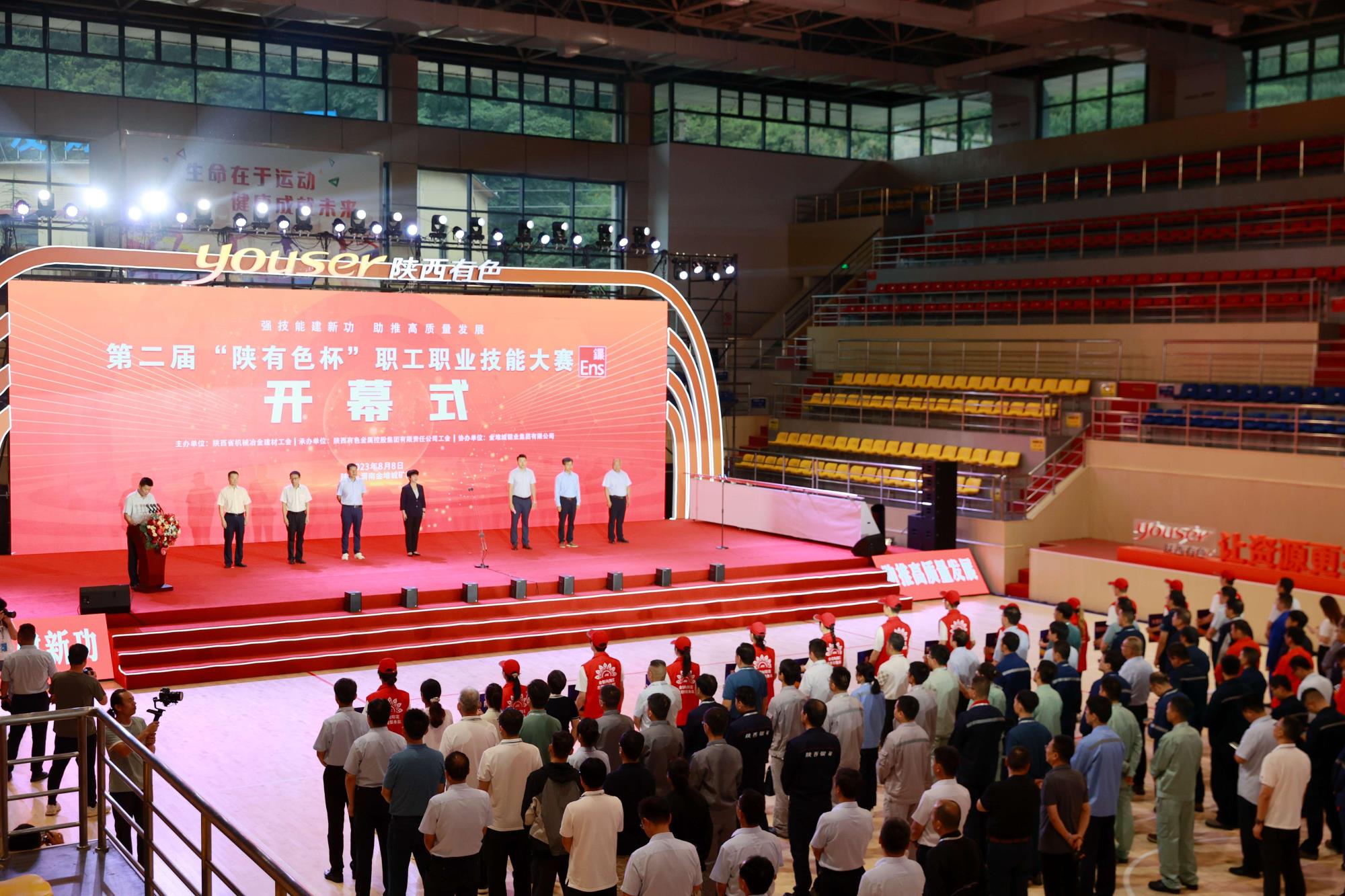 8月8日,金堆城礦區(qū)彩旗飄飄、鼓聲陣陣,伴隨著熱烈的迎賓節(jié)目《鼓舞飛揚》,由陜西省機械冶金建材工會主辦,陜西有色金屬集團工會承辦,金鉬集團協(xié)辦的第二屆“陜有色杯”職工職業(yè)技能大賽在金鉬集團開幕。陜西省機械冶金建材工會主席譚小榮宣布大賽開幕,工會副主席杜佳鵬講話。陜西有色金屬集團黨委副書記、董事、工會主席王小慶致辭。