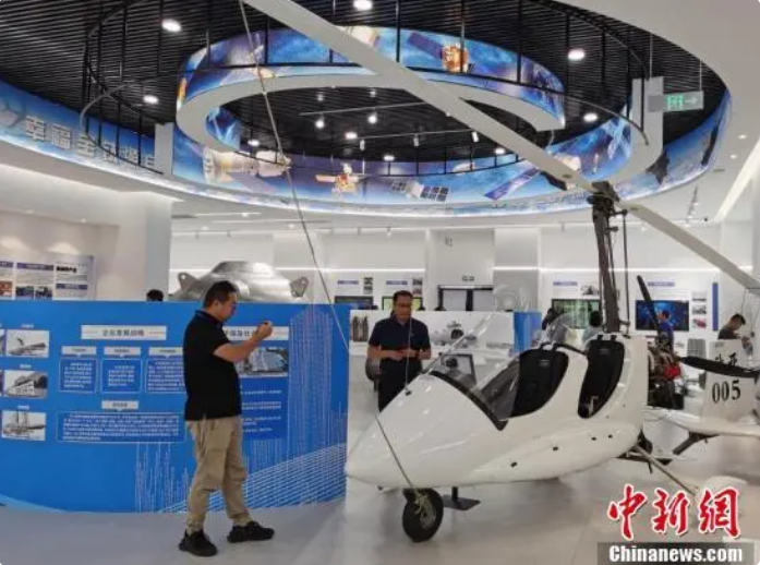 寶鈦集團展覽館內(nèi),用鈦制作的直升飛機引起參觀者的關(guān)注。黨田野 攝