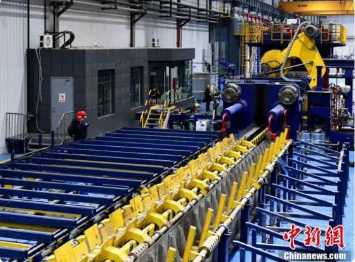 近日,“高質(zhì)量發(fā)展調(diào)研行”采訪團來到位于陜西省寶雞市的寶鈦集團。據(jù)介紹,作為一種金屬,鈦具有耐腐蝕、親生物、質(zhì)量輕等特點,因此被廣泛應(yīng)用于航空工業(yè)、家居用品、醫(yī)療器械等方面。在寶鈦集團展覽館內(nèi),擺放著用鈦金屬制作的直升飛機、潛水設(shè)備、鍋碗瓢盆、醫(yī)療器械等產(chǎn)品。工作人員表示,自1965年建企以來,寶鈦集團構(gòu)建了從海綿鈦制備,到熔煉、加工、深加工及裝備制造的全產(chǎn)業(yè)鏈。為中國航空、航天、海洋和民用等多領(lǐng)域用鈦需求提供了支持,產(chǎn)品遠銷50多個國家和地區(qū)。據(jù)悉,2022年,寶雞鈦材生產(chǎn)加工量約6.5萬噸,占到全國的65%、世界的33%以上,鈦產(chǎn)業(yè)集群實現(xiàn)產(chǎn)值610億元。圖為寶鈦集團高品質(zhì)鈦及鈦合金管材、型材生產(chǎn)線。寶鈦集團 供圖