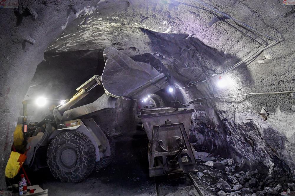 12月14日,在陜西震奧鼎盛礦業(yè)有限公司距主洞口4000米、深200多米的礦井內(nèi),重載車(chē)輛等待斜井提升作業(yè)。