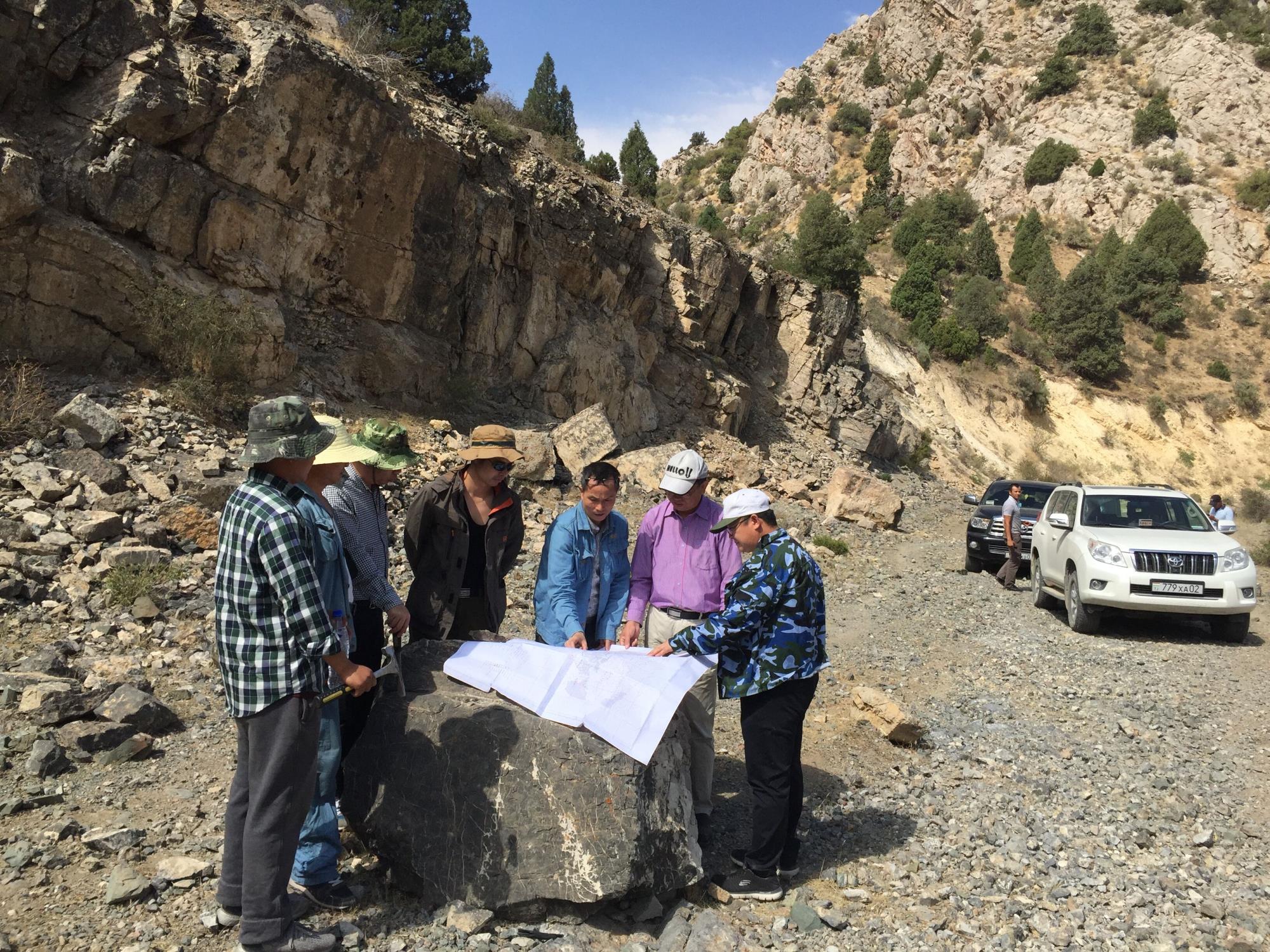 公司技術人員在塔吉克斯坦阿爾登-托普坎礦田進行現(xiàn)場踏勘研討