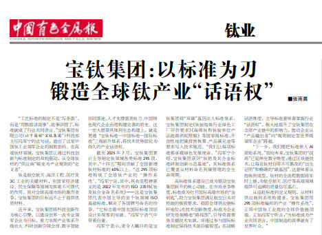 “工藝標(biāo)準(zhǔn)的制定不是‘寫條款’,而是‘用數(shù)據(jù)講故事’。故事講圓了,標(biāo)準(zhǔn)就成了行業(yè)共同語言。”寶鈦集團(tuán)有限公司(以下簡稱“寶鈦集團(tuán)”)科技部主任馮軍寧的這句話,道出了這家中國鈦工業(yè)領(lǐng)軍企業(yè)的制勝密碼。在高端鈦材領(lǐng)域,寶鈦集團(tuán)正通過科技創(chuàng)新與標(biāo)準(zhǔn)制定的雙輪驅(qū)動,從全球鈦材的“供應(yīng)商”蛻變?yōu)楫a(chǎn)業(yè)規(guī)則的“定義者”。
