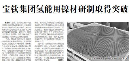 中國有色金屬報(bào):寶鈦集團(tuán)氫能用鎳材研制取得突破
