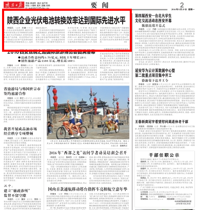 8月25日,記者在省國資委獲悉,陜西有色光電科技有限公司不斷吸收先進(jìn)技術(shù),提升自主研發(fā)能力,依靠科技創(chuàng)新促進(jìn)產(chǎn)品升級(jí)。經(jīng)過前期試車試產(chǎn),日前該公司主導(dǎo)產(chǎn)品光伏電池的轉(zhuǎn)換效率穩(wěn)定在國家要求之上,達(dá)到國際先進(jìn)水平。