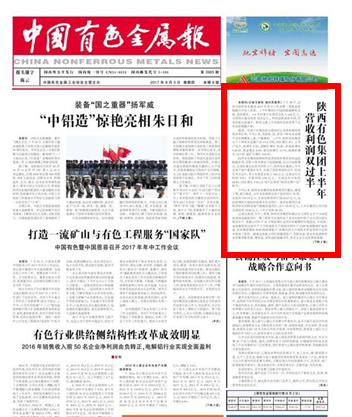 中國(guó)有色金屬報(bào):陜西有色集團(tuán)上半年?duì)I收利潤(rùn)雙過半