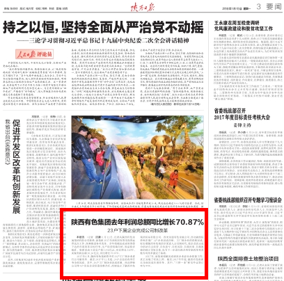 1月12日,記者從陜西有色金屬集團有限公司獲悉,該集團2017年深化國有資本投資運營試點工作,統(tǒng)籌推進各項改革。全年超額完成省國資委下達的年度改革目標任務(wù),生產(chǎn)經(jīng)營持續(xù)向好,效益穩(wěn)步提升。集團完成工業(yè)總產(chǎn)值1256億元,同比增長3.69%,實現(xiàn)利潤總額10.26億元,同比增長70.87%。