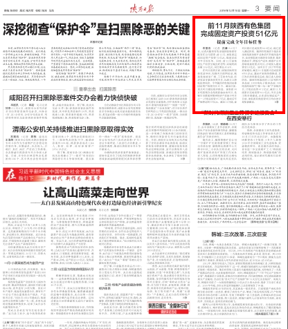 陜西日?qǐng)?bào):前11月陜西有色集團(tuán)完成固定資產(chǎn)投資51億元