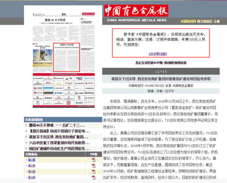 中國有色金屬報:真抓實干出實績 西北有色地礦集團對秦鼎釩礦建設(shè)項目驗收表彰