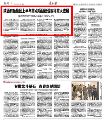 陜西日?qǐng)?bào):陜西有色集團(tuán)上半年重點(diǎn)項(xiàng)目建設(shè)取得重大進(jìn)展