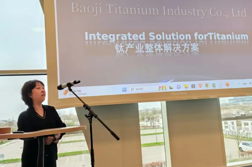 嚴平針對金鉬集團的企業(yè)情況及產品結構作了推介;寶鈦集團外貿部副部長孫毓蔚針對寶鈦在國際市場上的產品、市場表現(xiàn)及應用進行了推介。