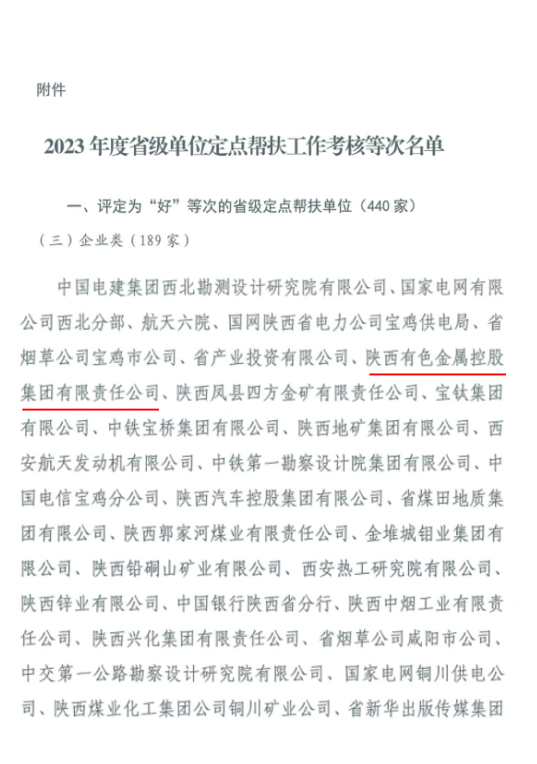 陜西有色金屬集團(tuán)連續(xù)三年獲得省級定點幫扶考核最高等次