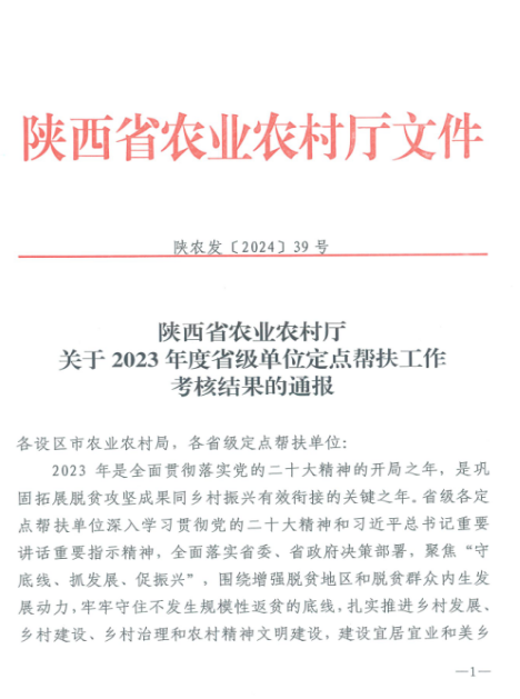近日,陜西省農(nóng)業(yè)農(nóng)村廳印發(fā)《關(guān)于2023年度省級單位定點幫扶工作考核結(jié)果的通報》(陜農(nóng)發(fā)〔2024〕39號),對2023年度全省定點幫扶工作考核結(jié)果進(jìn)行通報,陜西有色金屬集團(tuán)被評為省級定點幫扶“好”等次單位,在進(jìn)入鞏固脫貧攻堅成果同鄉(xiāng)村振興有效銜接期連續(xù)三年獲此殊榮。