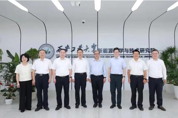 簽約儀式前,吳群英一行參觀了西安工業(yè)大學(xué)新能源科學(xué)與技術(shù)研究院,該院創(chuàng)立于2020年,以儲(chǔ)氫材料及器件、二次電池電機(jī)關(guān)鍵原材料及高性能二次電池、光、電催化為主要研究方向。