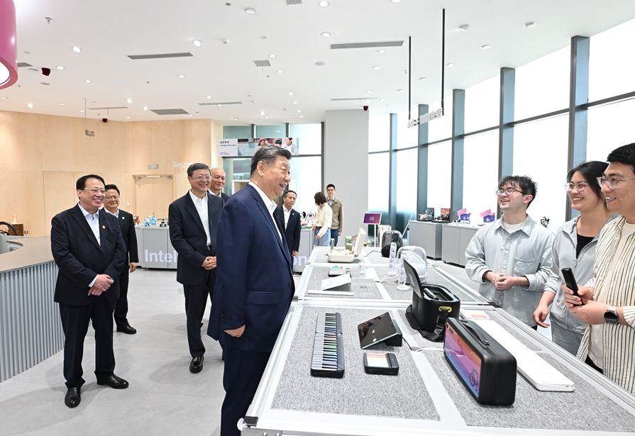 4月29日,中共中央總書記、國家主席、中央軍委主席習近平在上??疾臁_@是習近平在位于徐匯區(qū)的上?!澳K倏臻g”大模型創(chuàng)新生態(tài)社區(qū)人工智能產(chǎn)品體驗店考察。新華社記者 謝環(huán)馳 攝