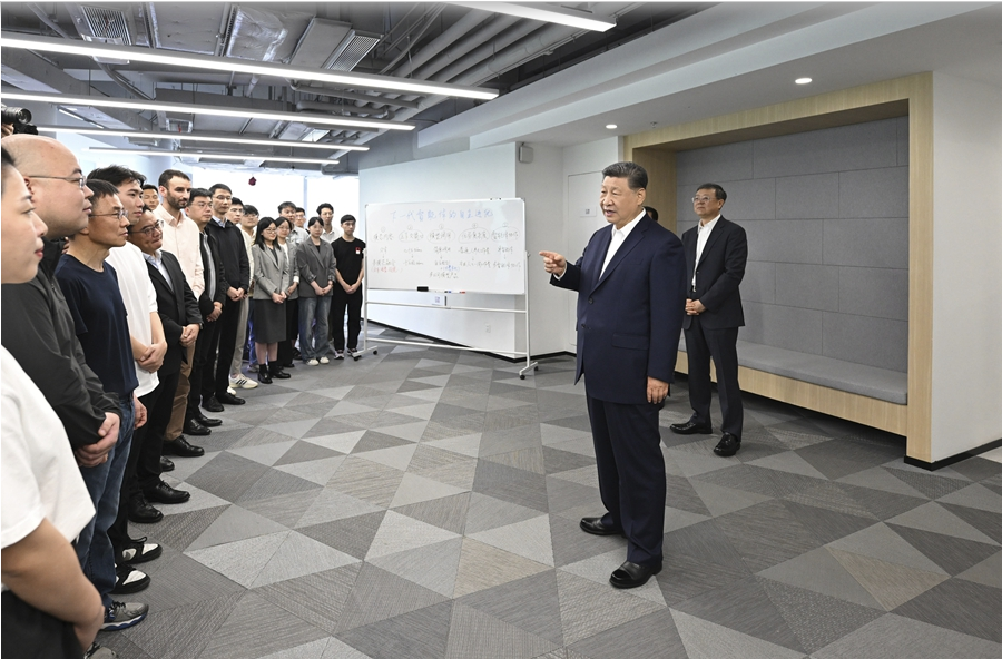 4月29日,中共中央總書記、國家主席、中央軍委主席習近平在上海考察。這是習近平在位于徐匯區(qū)的上海“模速空間”大模型創(chuàng)新生態(tài)社區(qū)考察。新華社記者 王曄 攝