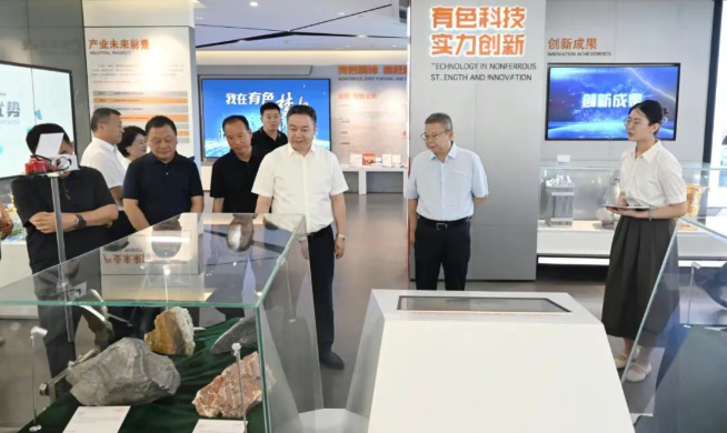座談會(huì)前,曾冠軍一行在莫勇陪同下參觀了陜西有色金屬集團(tuán)展廳。