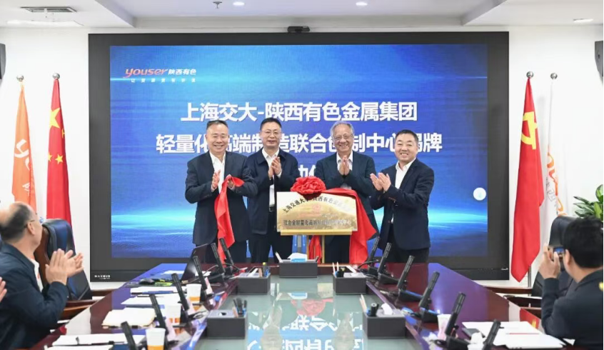 10月10日,上海交大—陜西有色金屬集團(tuán)輕量化高端制造聯(lián)合創(chuàng)制中心揭牌暨啟動儀式在集團(tuán)總部舉行。中國工程院院士、上海交大輕合金精密成型國家工程研究中心主任丁文江,陜西有色金屬集團(tuán)黨委書記、董事長吳群英見證揭牌,上海交大黨委常委、副校長、鎂材料及應(yīng)用工程技術(shù)研究中心主任曾小勤和集團(tuán)公司黨委委員、副總經(jīng)理黃忠良共同為聯(lián)合創(chuàng)制中心揭牌。
