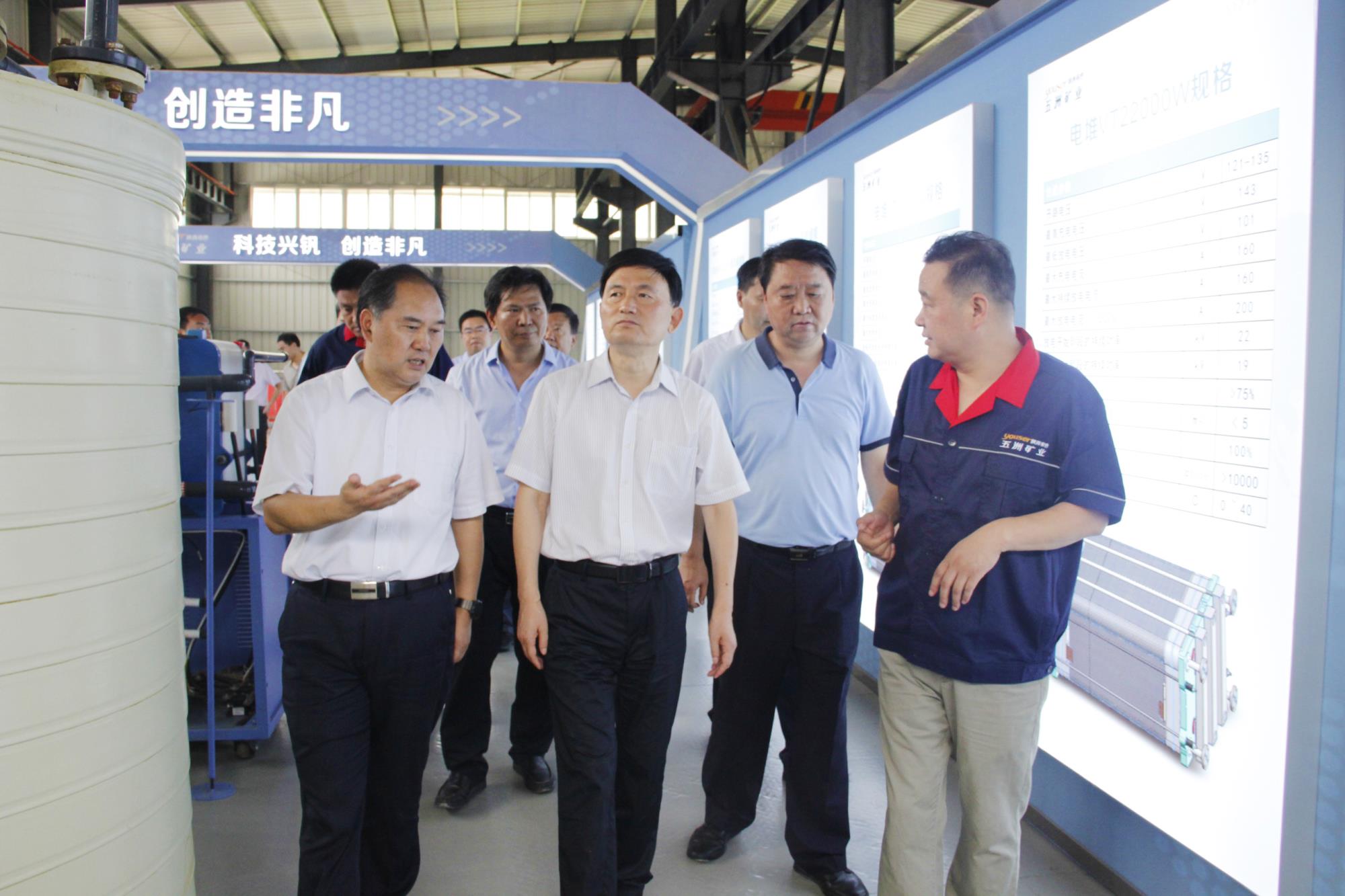 隨后,鄭光照一行來到五洲礦業(yè)釩產(chǎn)業(yè)園區(qū),參觀了釩系列產(chǎn)品成果展廳,詳細了解企業(yè)生產(chǎn)運營情況,公司領導現(xiàn)場匯報了企業(yè)生產(chǎn)經(jīng)營、安全環(huán)保、科技創(chuàng)新、發(fā)展規(guī)劃等情況,并就企業(yè)改革發(fā)展中需要政府協(xié)助解決的問題進行了交流。在聽取情況介紹后,鄭光照對五洲礦業(yè)近年來取得的成績和為商洛市經(jīng)濟社會發(fā)展做出的貢獻給予充分肯定,并就公司經(jīng)營發(fā)展提出了要求和希望。