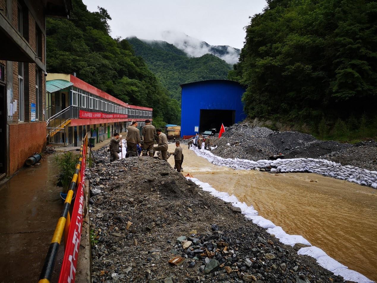 8月15日凌晨1點(diǎn),寶雞市鳳縣坪坎地區(qū)出現(xiàn)大暴雨天氣,暴雨引發(fā)山洪,較短時(shí)間內(nèi),四方金礦區(qū)域內(nèi)河水暴漲,沿線(xiàn)河堤、管線(xiàn)和道路等設(shè)施大面積沖毀,部分山體滑坡,電力、通訊、供水中斷。汛情就是命令,公司黨委立即召開(kāi)防汛防地質(zhì)災(zāi)害緊急會(huì)議,從上到下層層壓實(shí)黨員干部責(zé)任。各基層黨支部、生產(chǎn)單位負(fù)責(zé)人現(xiàn)場(chǎng)表態(tài),堅(jiān)決完成防汛救災(zāi)、保障生產(chǎn)任務(wù)。