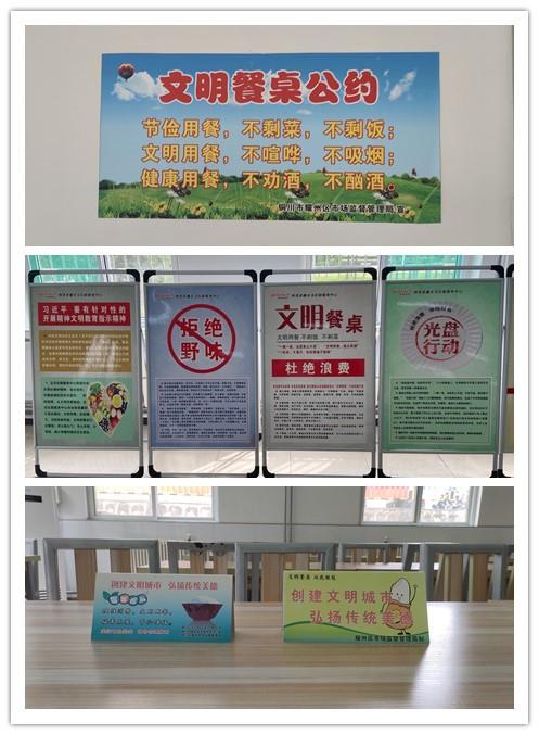 加大宣傳,營造氛圍。陜西美鑫公司始終秉承“一粥一飯當(dāng)思來之不易,半縷半絲恒念物力維艱”的理念,通過QQ工作群、微信工作群、公司網(wǎng)站、公眾號等各類平臺,向廣大干部職工普及餐桌文明知識,推廣餐桌文明禮儀,倡導(dǎo)節(jié)約用餐行為。并在職工餐廳懸掛宣傳條幅,張貼“文明餐桌行動”宣傳畫及“文明餐桌行動”告示牌、循環(huán)滾動播放宣傳標(biāo)語等多種方式大張旗鼓宣傳“文明餐桌”實踐活動的重要意義,為文明餐桌行動營造了良好的氛圍。