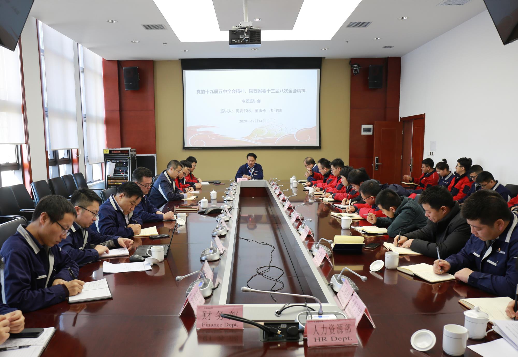 12月14日上午,天瑞硅材料在公司行政樓四樓視頻會(huì)議室召開黨的十九屆五中全會(huì)精神暨陜西省委十三屆八次全會(huì)精神專題宣講會(huì),陜西有色金屬集團(tuán)宣講團(tuán)成員、天瑞硅材料黨委書記、董事長(zhǎng)胡俊輝主講。公司班子成員、中層干部及職工代表40余人參加了宣講會(huì)。