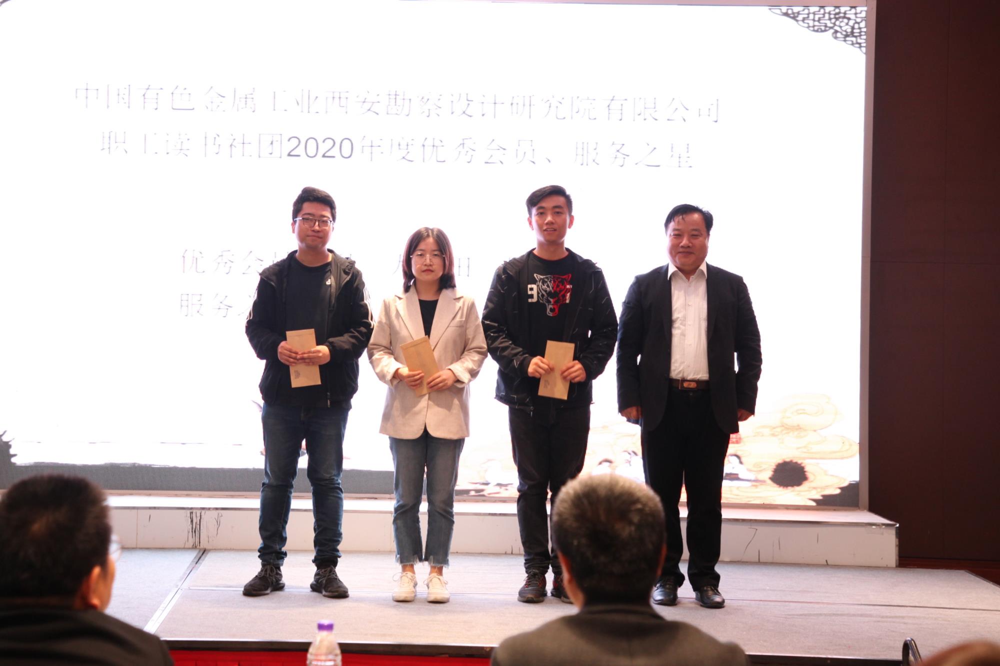 活動(dòng)分為兩部分,第一部分為讀書社團(tuán)2020年度總結(jié)表彰會(huì)。會(huì)上,公司副總經(jīng)理、讀書社團(tuán)會(huì)長(zhǎng)董忠級(jí)同志為讀書社團(tuán)西安有色設(shè)計(jì)院分會(huì)進(jìn)行了授牌。公司紀(jì)委書記韓秋分別為獲得優(yōu)秀會(huì)員和服務(wù)之星榮譽(yù)的會(huì)員頒發(fā)了榮譽(yù)證書。讀書社團(tuán)有色建設(shè)分會(huì)、曲江國(guó)際飯店分會(huì)負(fù)責(zé)人分別就各分會(huì)讀書活動(dòng)開(kāi)展情況進(jìn)行了匯報(bào)。社團(tuán)秘書長(zhǎng)許蒙國(guó)匯報(bào)了2020年度主要工作及2021年重點(diǎn)工作安排。