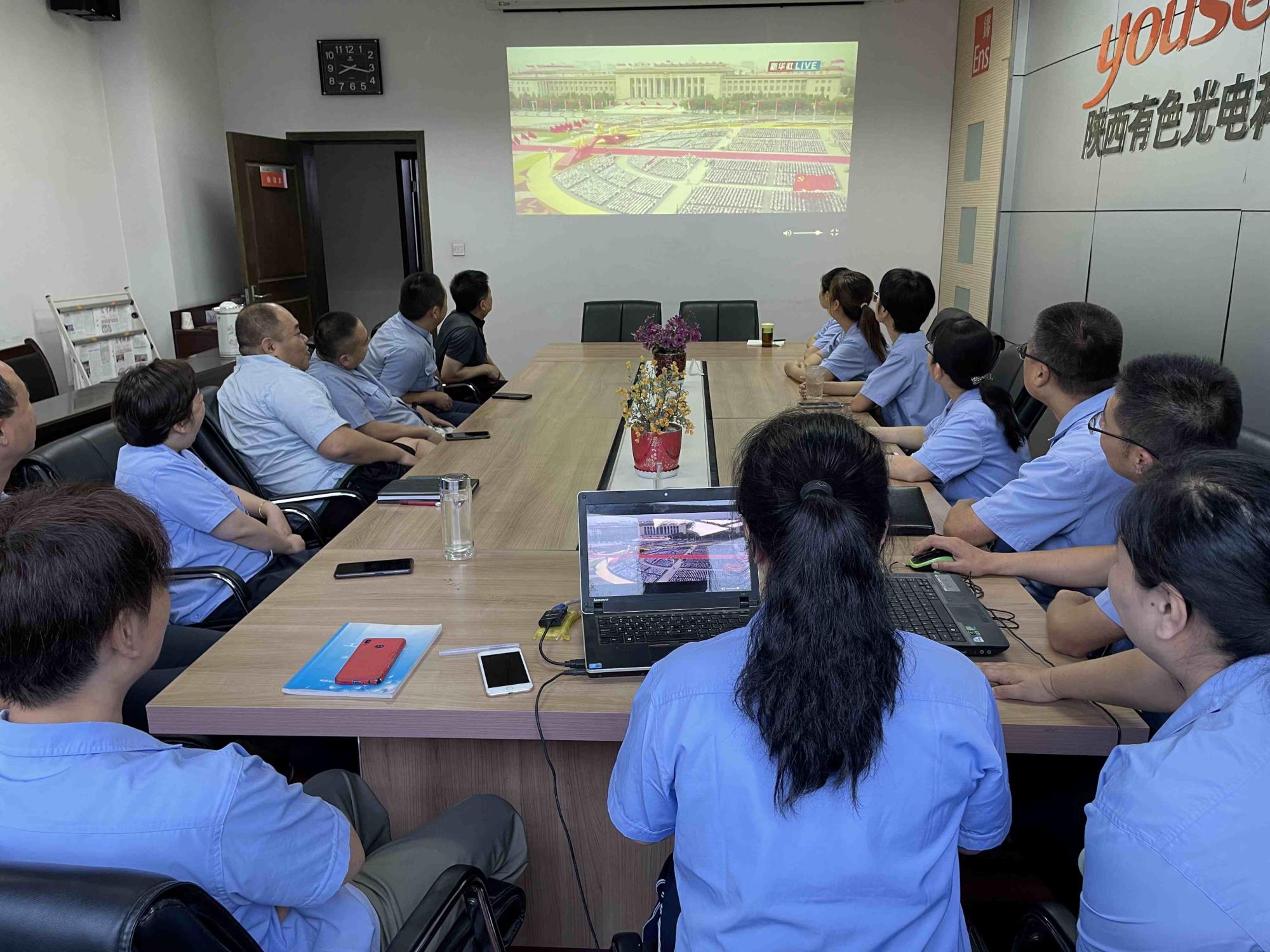為慶祝中國共產(chǎn)黨成立100周年,中共中央于7月1日上午8時在北京天安門廣場隆重召開慶祝大會,中共中央總書記、國家主席、中央軍委主席習(xí)近平發(fā)表重要講話。按照集團黨委統(tǒng)一安排,光電科技、華山半導(dǎo)體黨委組織兩公司領(lǐng)導(dǎo)、黨員中層干部、近5年兩公司表彰的“兩優(yōu)一先”代表、黨齡30年以上的老黨員代表、退伍軍人黨員代表、機關(guān)在崗黨員代表收看大會實況轉(zhuǎn)播。