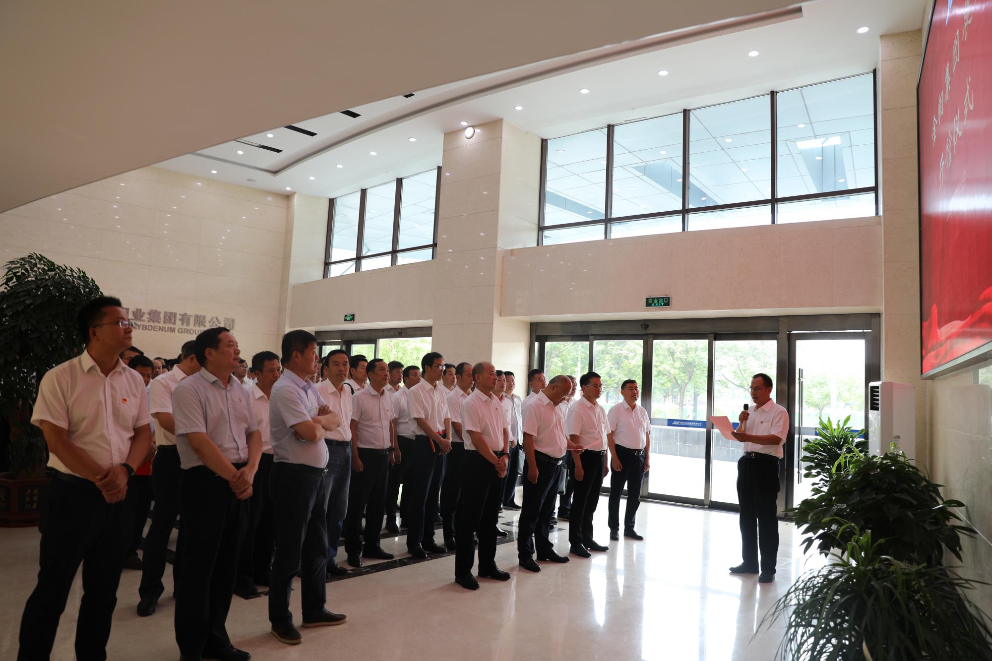 公司領(lǐng)導(dǎo)班子成員、總經(jīng)理助理,金鉬股份經(jīng)營層,集團機關(guān)部室負(fù)責(zé)人,股份機關(guān)、礦冶機關(guān)黨組織負(fù)責(zé)人,各單位黨政負(fù)責(zé)人及“兩先兩優(yōu)”受表彰人員等100余人參加了開館儀式。