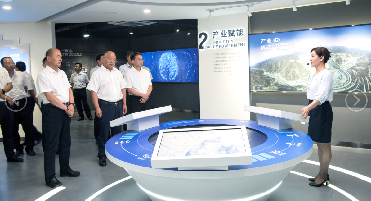 公司展廳由公司黨委宣傳部負(fù)責(zé)承建,位于金城大廈一樓西側(cè),建筑面積約370平方米,分為走進金鉬、產(chǎn)業(yè)賦能、社會責(zé)任、黨建引領(lǐng)、金鉬之星和走向未來6個展示單元。在為期半年多的施工建設(shè)中,收集了大量的素材,甄選出代表公司重要發(fā)展時刻的珍貴圖文資料,借助現(xiàn)代化聲光電集成技術(shù),再現(xiàn)了金鉬人在60余年發(fā)展中取得的驕人業(yè)績和奮進昂揚的精彩瞬間,呈獻給大家一場科技與創(chuàng)新、文化與藝術(shù)的視覺盛宴。