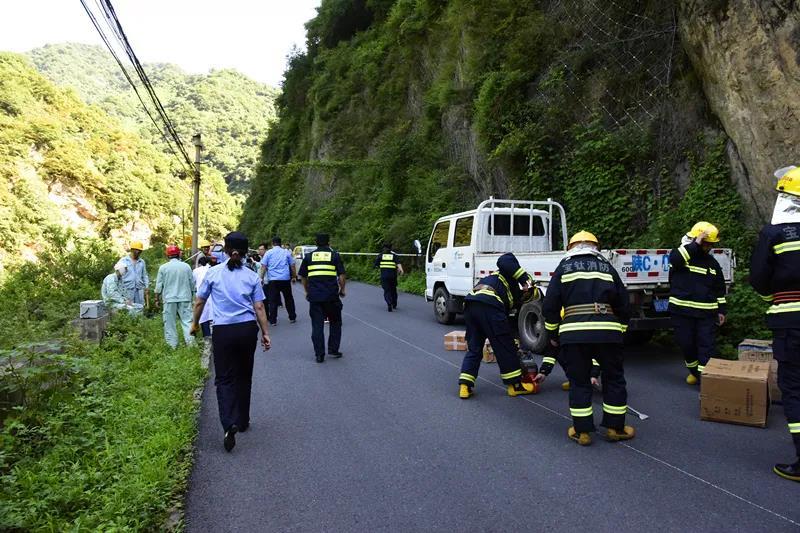 此次演練模擬場(chǎng)景為:受連續(xù)降雨影響,16時(shí)15分,寶鈦集團(tuán)老區(qū)進(jìn)山公路二號(hào)橋附近山體滑坡,滾石導(dǎo)致交通中斷。板材廠(chǎng)客貨車(chē)途經(jīng)該路段時(shí)被滾石砸中,車(chē)輛受損,駕駛員受傷。