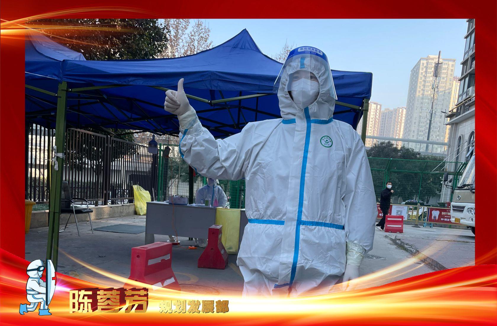 在電子城社區(qū)的日?qǐng)?bào)社小區(qū),兩集團(tuán)規(guī)劃發(fā)展部的陳蓉芳主要負(fù)責(zé)核酸檢測(cè)和檢測(cè)數(shù)據(jù)登記工作。早上6點(diǎn)就已上崗的她,認(rèn)真持續(xù)著手頭重復(fù)的工作。她說(shuō):“雖然辛苦但是挺高興的,住戶們都很配合,核酸檢測(cè)工作順暢高效。這個(gè)時(shí)候能為生活的城市做點(diǎn)什么,特別有意義、特別自豪?!备糁鴮訉臃雷o(hù),擋不住她溫暖的笑。